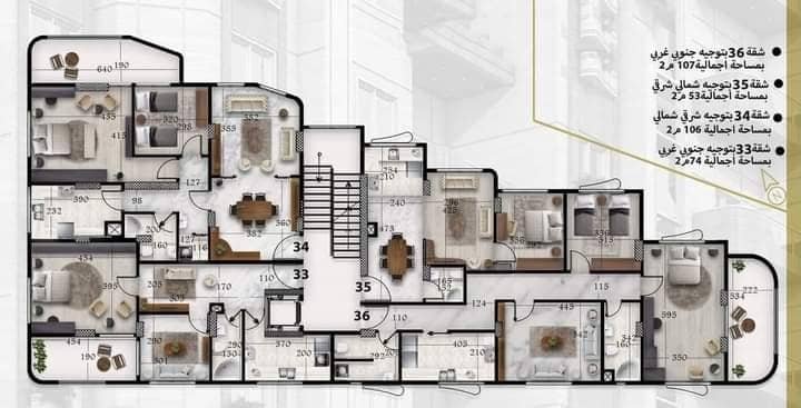 عداد كهرباء + عداد ماء جاهزين لكل شقة.
